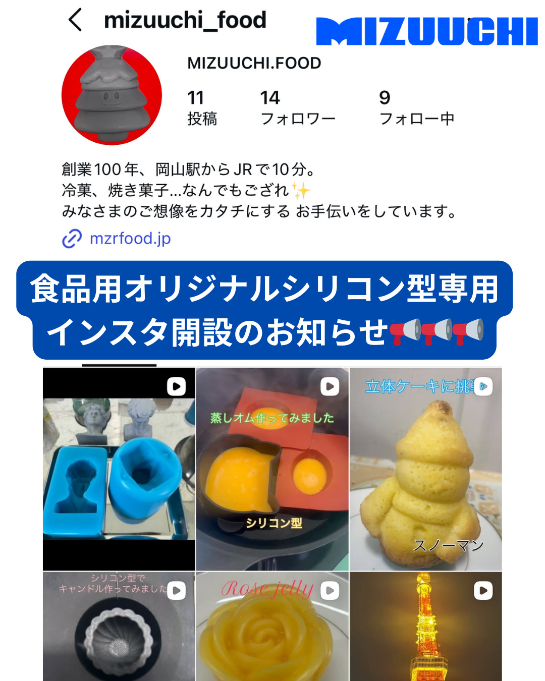 水内ゴムでは食品用シリコン型専用のInstagramアカウント(mizuuchi_food)を開設しました✨ホームページでの事例掲載と共に、SNSでも随時情報を更新しますので、フォローをお願いします☺